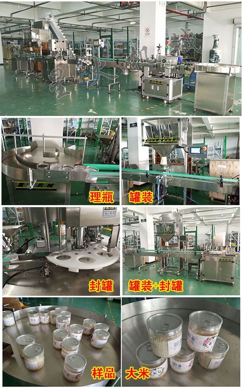 理瓶—→物料灌裝入罐—→自動(dòng)封罐—→旋蓋鎖蓋—→貼標(biāo)—→收瓶完成